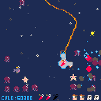 Dodge the enemies' attacks as they shoot pieces of gold and throw themselves at you.
